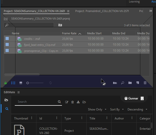 EditMate users also have the advantage of being able to dock and undock the panel into their Adobe Premiere workspace as if it were any other Adobe Premiere panel.