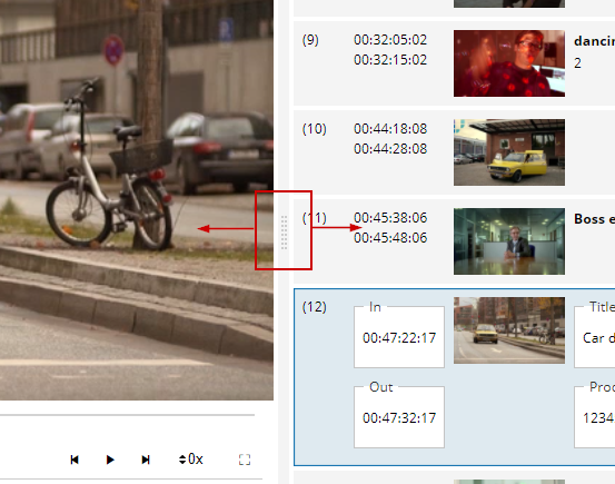 Users can adjust the size of the Player and the Event list area by drag and drop of the splitter control between the different areas.